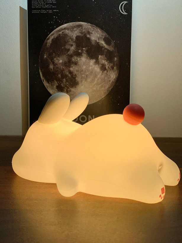 این چراغ خواب از جنس سیلیکون نرم و ضدضربه ساخته شده و لمس آن حس آرامشبخشی دارد. طراحی خرگوش خوابیده با حالت چهره شیرینش، محیط اتاق را پر از حس آرامش و زیبایی میکند.