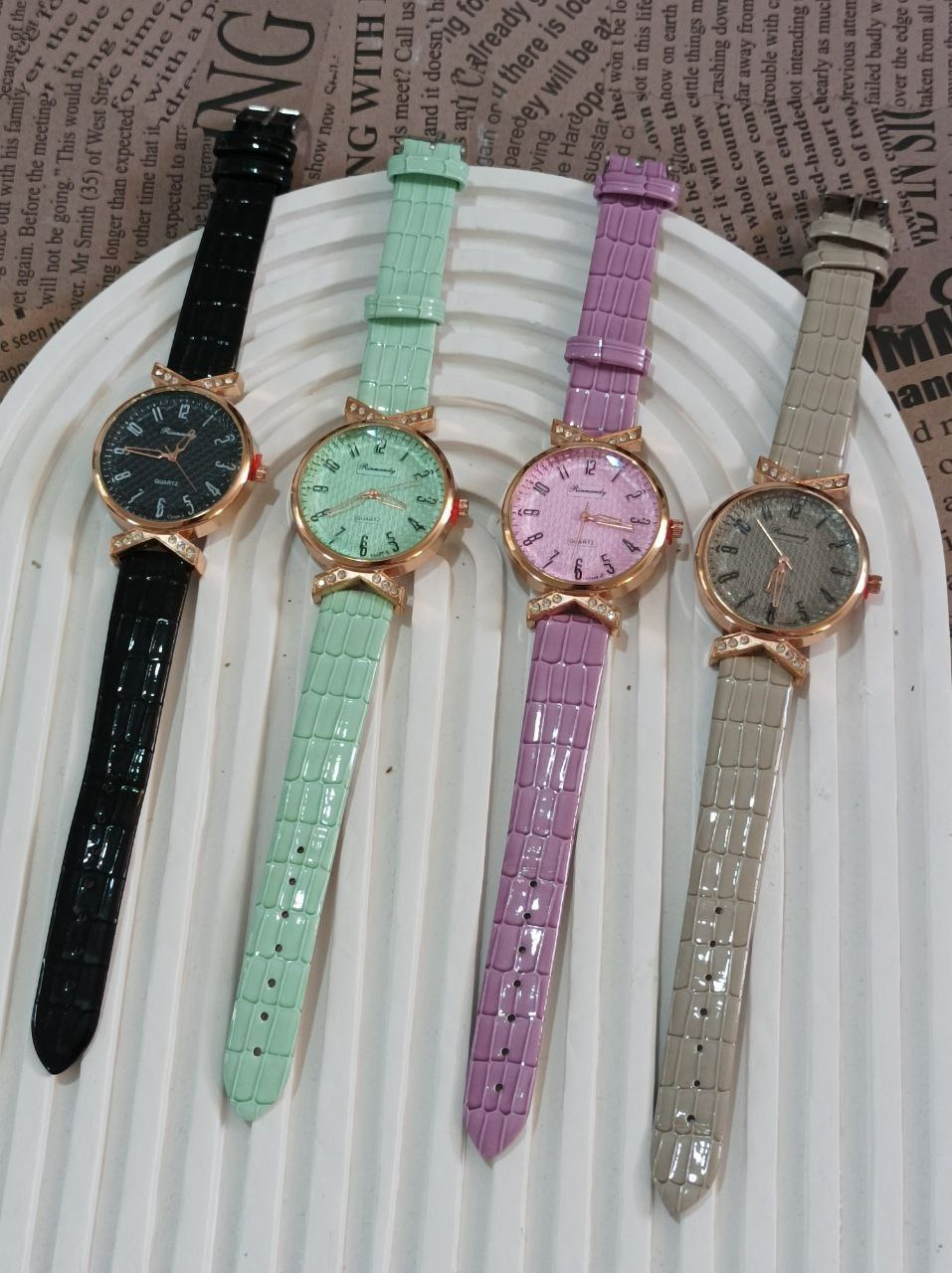 ساعت زنانه ریناندی مدل شیشه الماسی استیل با بند چرمی